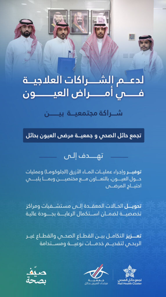 اتفاقية تعاون مع جمعية “مرضى العيون بحائل” بهدف دعم الخدمات العلاجية لمرضى العيون .