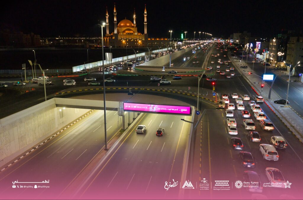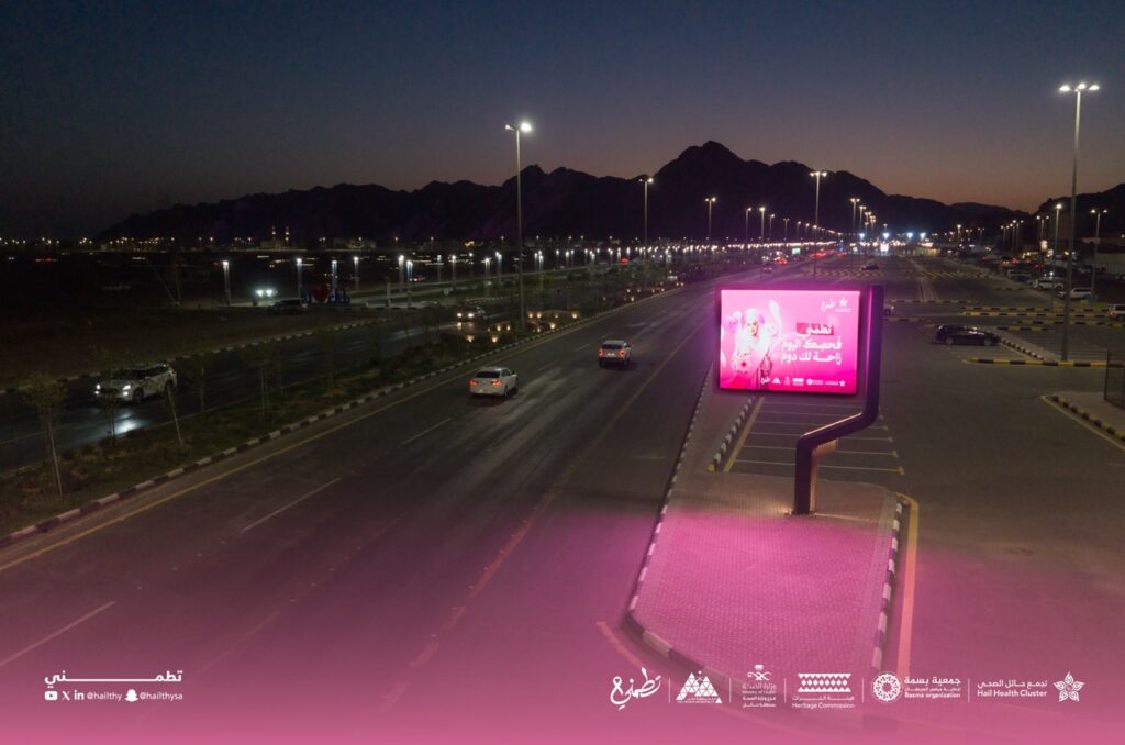 ميادين حائل تزدان باللوحات التوعوية الخاصة بحملة تطمني للتوعية عن أمراض الثدي