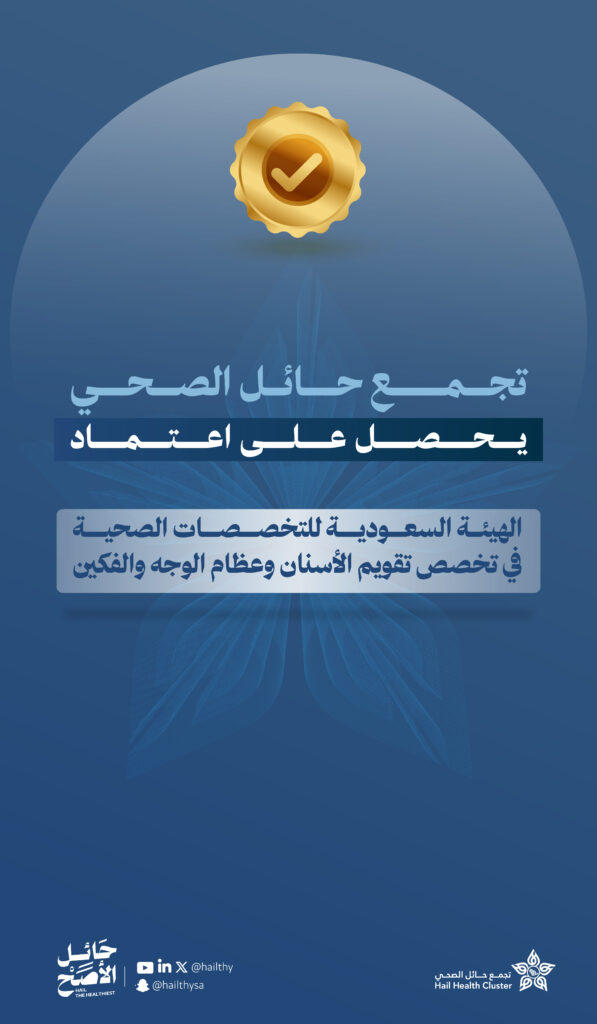 حصل تجمع حائل الصحي على اعتماد الهيئة السعودية للتخصصات الصحية لبرنامج تقويم الأسنان وعظام الوجه والفكين، في خطوة تعزز بيئة التدريب التخصصي للأطباء، وتدعم تطوير الكفاءات الصحية، بما يسهم في رفع جودة الخدمات المقدمة للمستفيدين في المنطقة.
