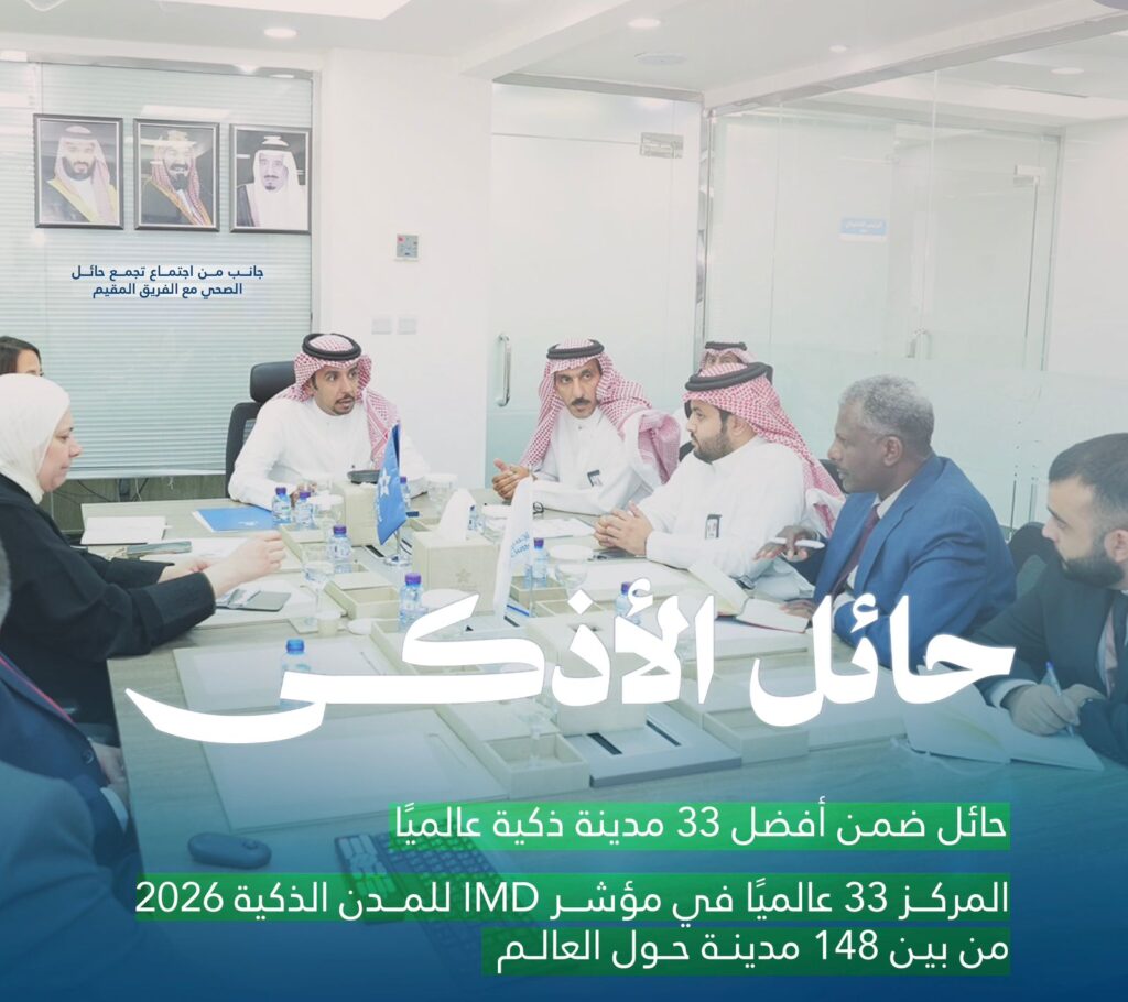 سجّلت حائل حضورًا لافتًا ضمن أفضل المدن الذكية عالميًا، بحصولها على المركز 33 عالميًا